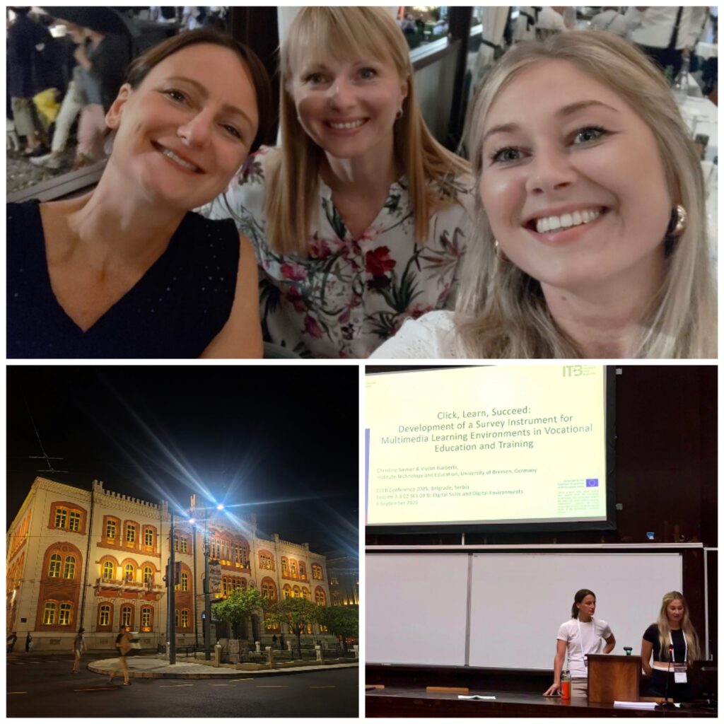 The Institute for Technology and Education (ITB) was represented at this year’s ECER 2025 conference in Belgrade with several contributions. Vivian Harberts and Christine Siemer had the opportunity to present their current research activities there and gave a presentation entitled: „Click, Learn, Succeed: Development of a Survey Instrument for Multimedia Learning Environments in Vocational Education and Training“.